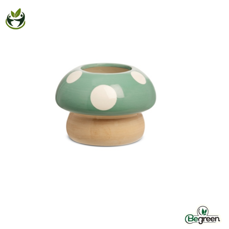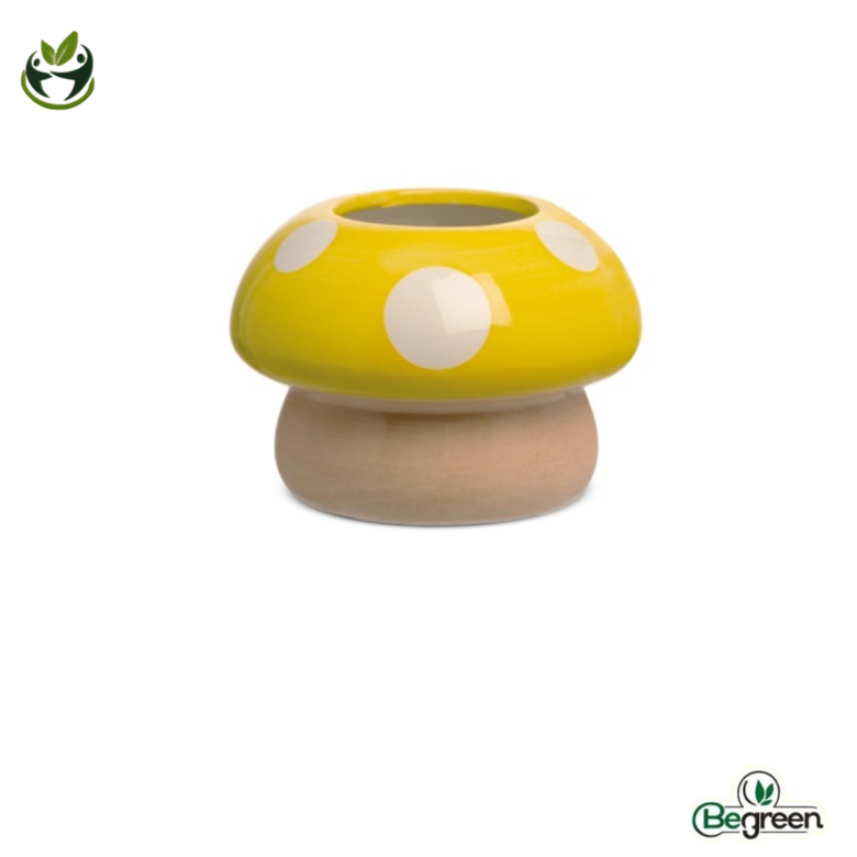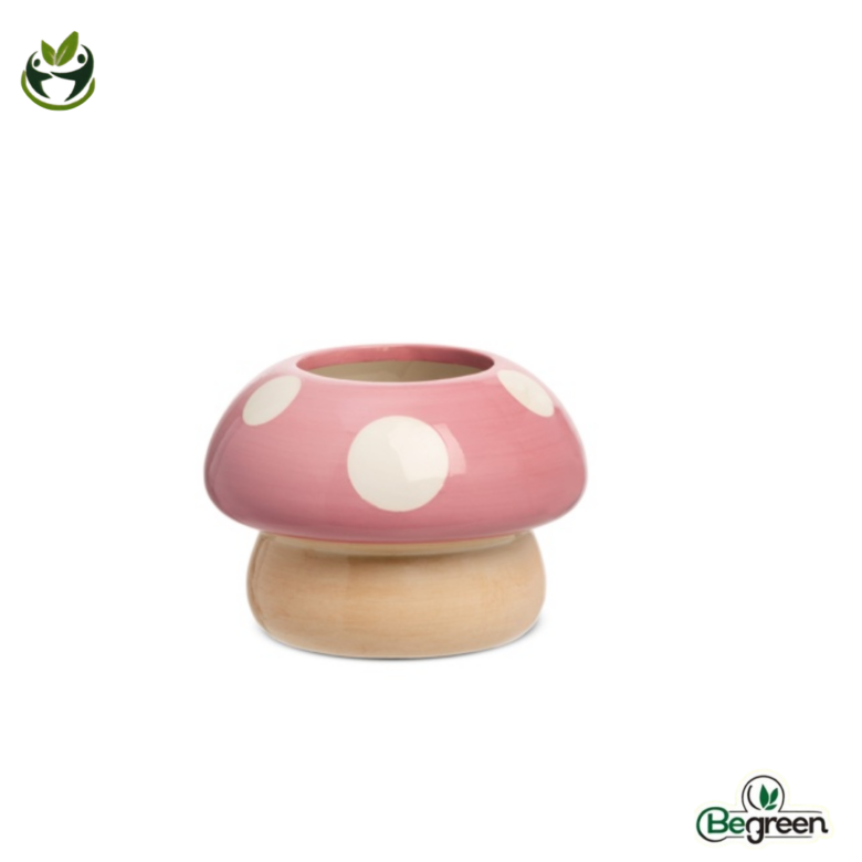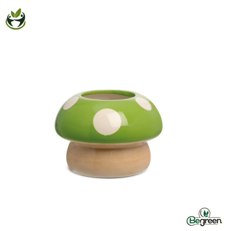 Κεραμικό κασπώ της  Likò Italia σε σχήμα μανιταριού, διαθέσιμο σε ποικιλία ζωηρών αποχρώσεων, ιδανικό για μικρά φυτά εσωτερικού χώρου και διακοσμητικές συνθέσεις.