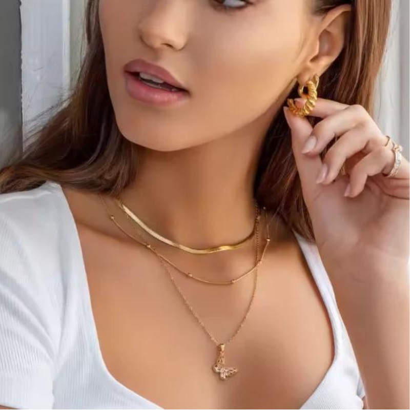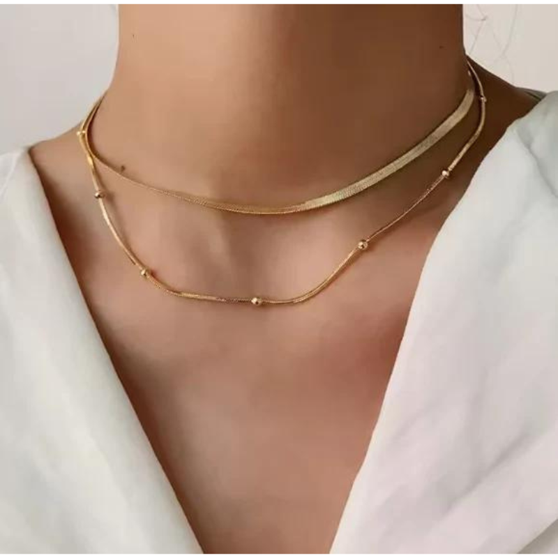 Κολιέ διπλή αλυσίδα ατσάλι χρυσό-NE407